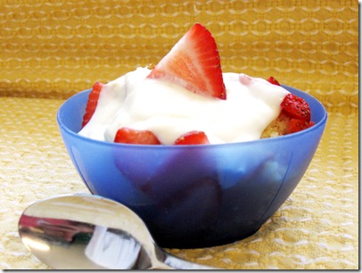 Second, there was a very real possibility that Hubby would not even be home for Mother’s Day. And even if he was, he wouldn’t have time to do anything for it. We discussed it beforehand, and decided to celebrate later. But, it was STILL Mother’s Day, dang it! And if I was cooking, I was going to make something drool worthy. I planned my favorite menu and just needed dessert. So I opened up my fridge for some inspiration. Those luscious strawberries were staring me in the face. Strawberry shortcake, of course! I thought to myself. But what if we used that awesome dip instead of whipped cream! And the typical angel food cake is nice, but what if we went for full fledged pound cake to make it even more tasty! LOVE this idea!